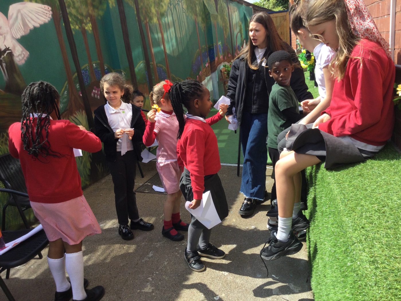 Over the past few months, the play team, alongside Mr Bartek, has worked incredibly hard to significantly expand the range of activities on offer to all children during play times. It’s been an absolute pleasure to see the children so excited and engaged! Our children now have access to a mud kitchen, sports court, dressing up costumes, water play, a calming spiritual corner, large garden games, a variety of board games, tuff trays with small world figures and building blocks, an arts and crafts station, a lively music wall, a brand new sand pit, table football, soft play equipment, buggies and dolls, a cosy reading shed, trampolines, space hoppers, a stage to perform on and so much more!