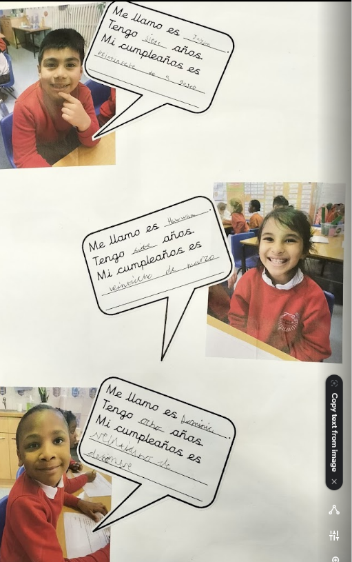 In Year 6, children learn how to conjugate verbs, which supports them in referring to different subject matters with increasing fluency and which supports them in constructing more developed sentences. It was wonderful to see how the children now record their self assessments and peer assessments in Spanish, showcasing the excellent progress they are making.