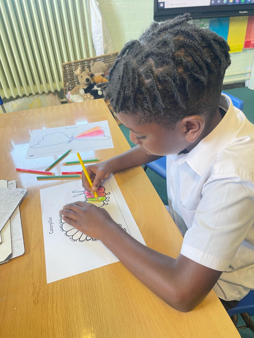 In Year 3 and Year 4, the children worked together to consolidate their prior unit of learning, La Comida. They also worked with a familiar story, The Very Hungry Caterpillar by Eric Carle. After recapping what they already knew, the children prepared props and practised retelling parts of the story in groups, before working as a class to retell the story from beginning to end.