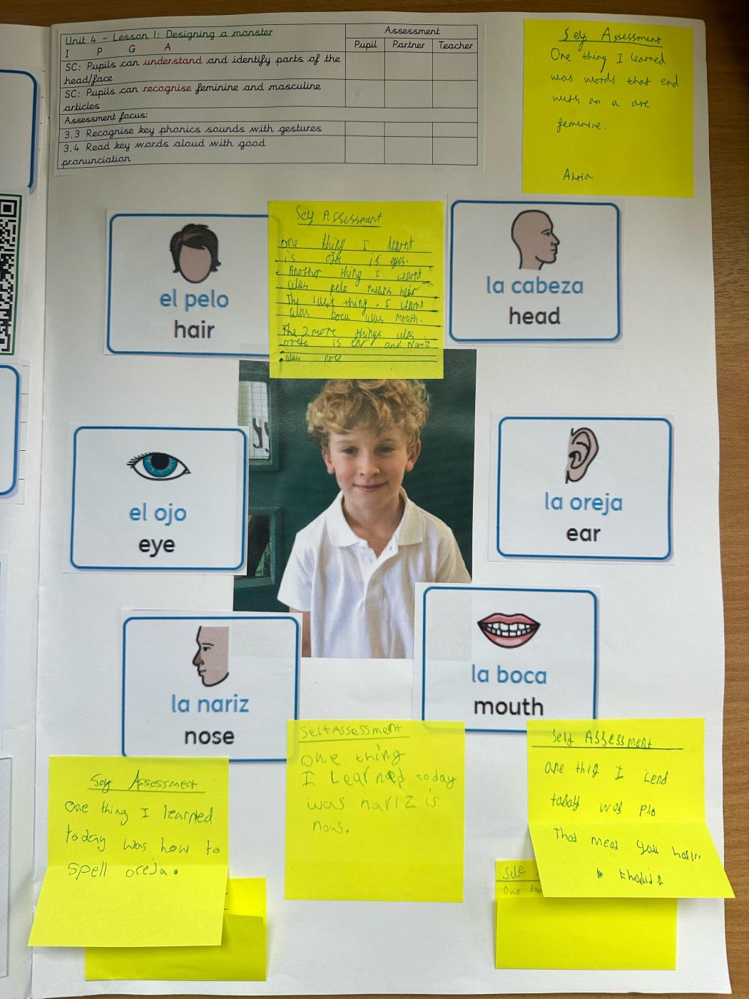 In Year 3, the children are learning all about ‘las partes de la cara y el cuerpo’ (the parts of the face and body), which they will use to design and describe their very own monster!