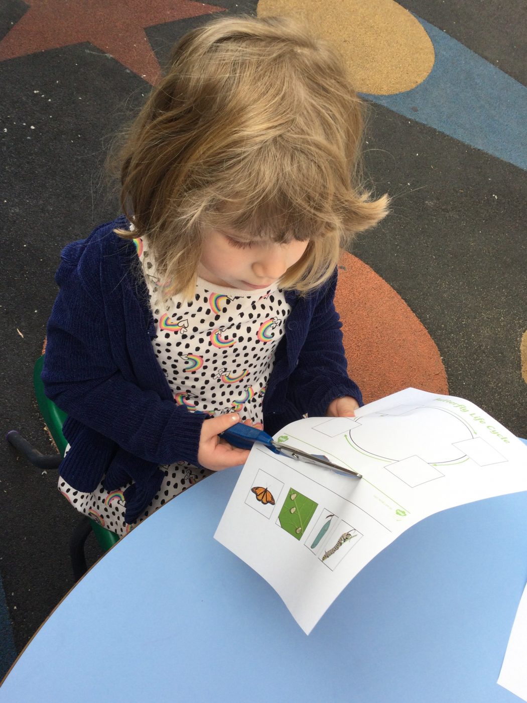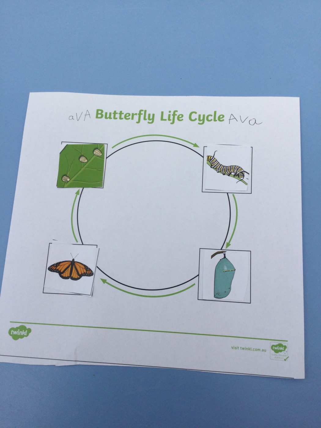 We have been learning about the ‘Life-Cycle’ of a Butterfly. Our focus text is ‘The Very Hungry Caterpillar’ by Eric Carle which follows the life of a Butterfly from Egg – Caterpillar – Cocoon – Butterfly. We watched a documentary and were amazed at how the caterpillar can change into a Butterfly! We created our own ‘Life-Cycle’ of a Butterfly poster by using our knowledge and practising our cutting and pasting skills.