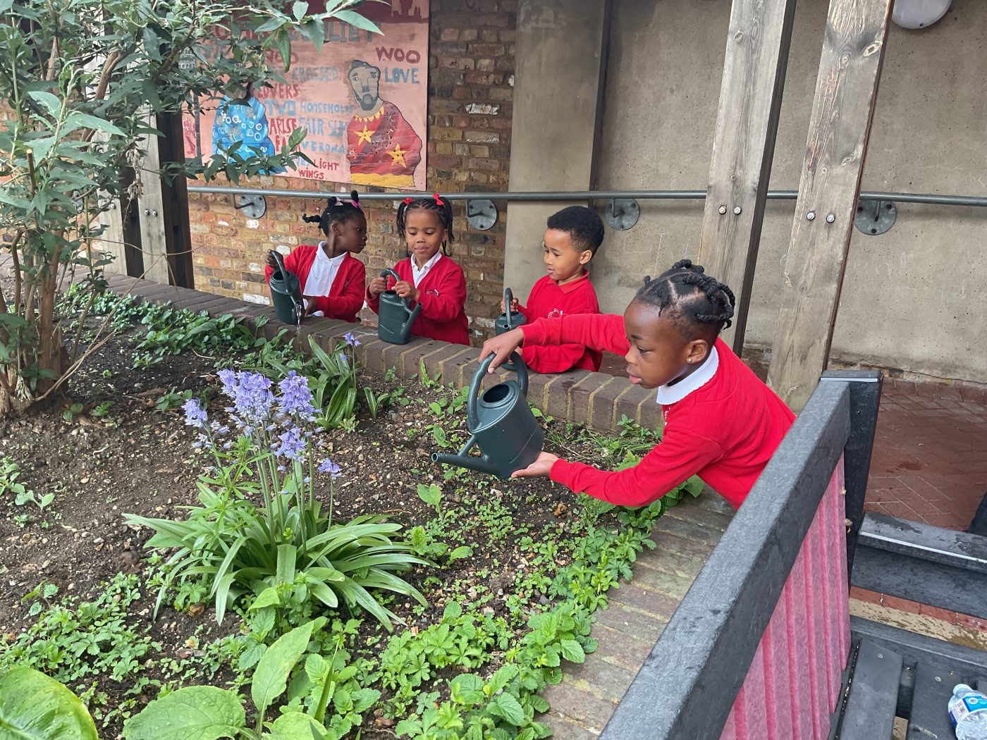On Tuesday, some children from Reception got their gardening hats on with Mr. Bartek, and helped him water the flowerbeds in our school playground – they had a great time! In class, we have been reading Errol’s Garden and used some of our observational skills to paint our very own Daffodils. We have also been using our small world area to explore how plants and flowers grow and to learn about some of their key features.