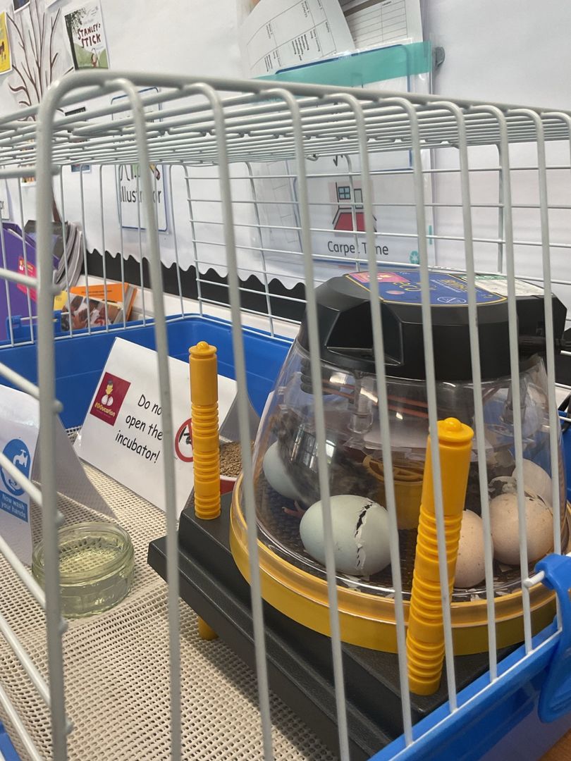 The children spent the first few hours observing the eggs and by lunch time they noticed that a few eggs had reached their pipping stage and were beginning the hatching process. Over the next few days, 6 eggs hatched and the class were very excited about watching them grow and getting to handle them.