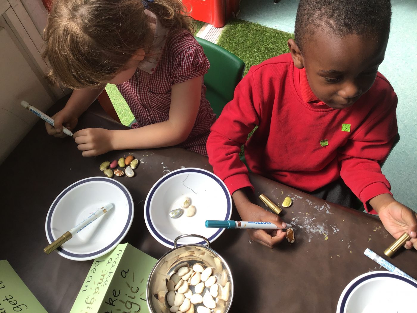 As we dived deeper into Jack and the Beanstalk this week, we had magic beans everywhere! We made them to build our fine motor and creative skills, choosing many different designs to make each bean unique. Children used the magic beans they had made to act out the story and enjoyed becoming more dramatic as the week went by. We also used the beans to support our subitising skills in Math. Children need to be able to see (without counting) objects up to 5 by the end of the year. They used their composition facts to make larger numbers like 6, 7 or 8 by combining the smaller parts they subsidised. It was fun, challenging ourselves to see how quickly we could recognise the total.