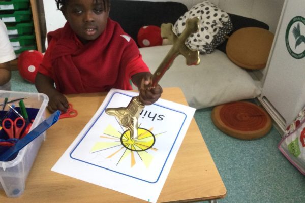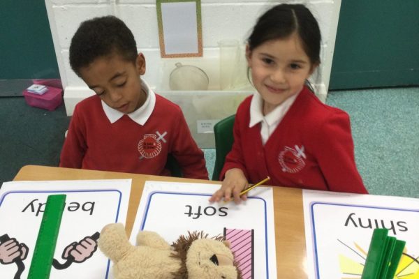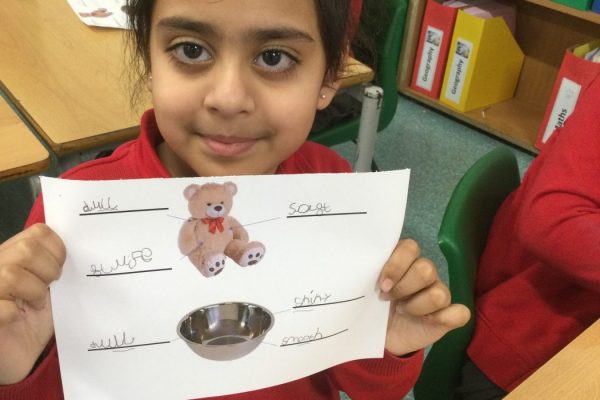 We also went on an exciting materials hunt around the school, helping the children recognise these materials in real-life contexts. Back in the classroom, they investigated a range of objects and explored their properties, learning key vocabulary such as shiny, hard, soft, bendy and transparent.