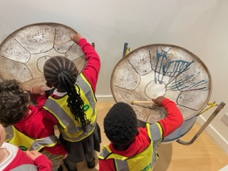 This week, Year 1’s highlight was visiting Hackney Museum. For many of us, it was the first time we had ever been to this special museum. We connected our learning from History about our local history and our part as people in Hackney. We enjoyed learning about the rich heritage of Carnival in Hackney and how it is celebrated. We were able to see beautiful Carnival costumes, learn how they were made and even design our own costumes. We particularly enjoyed playing the steel drums and dancing to music with our flags.
