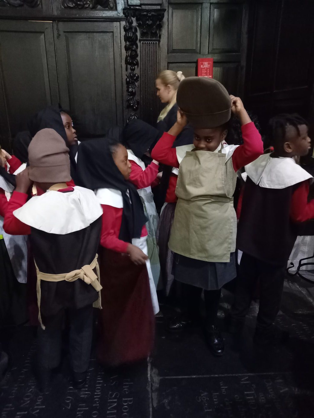 Last Monday the children enjoyed an amazing, jam packed day filled with exciting activities at a workshop near St. Paul’s Cathedral. The children learnt so much about the Great Fire of London, they actually remembered quite a lot as it was a topic we had previously looked at. They were told amazing stories about Sir Christopher Wren and tried out different props. They tried writing using a quill which was such an experience and then went on to build their own towers of the cathedral using wooden blocks. Later on we went on a historical walk and finally entered a beautiful, old church where the children got to try on clothes. A fab day was had by all!
