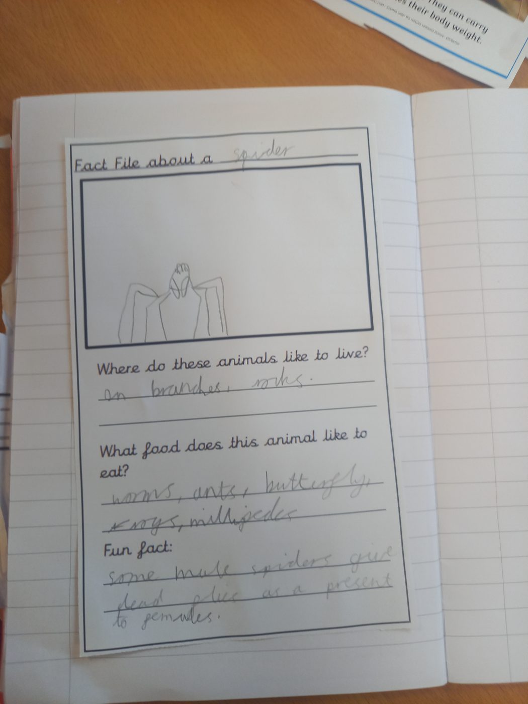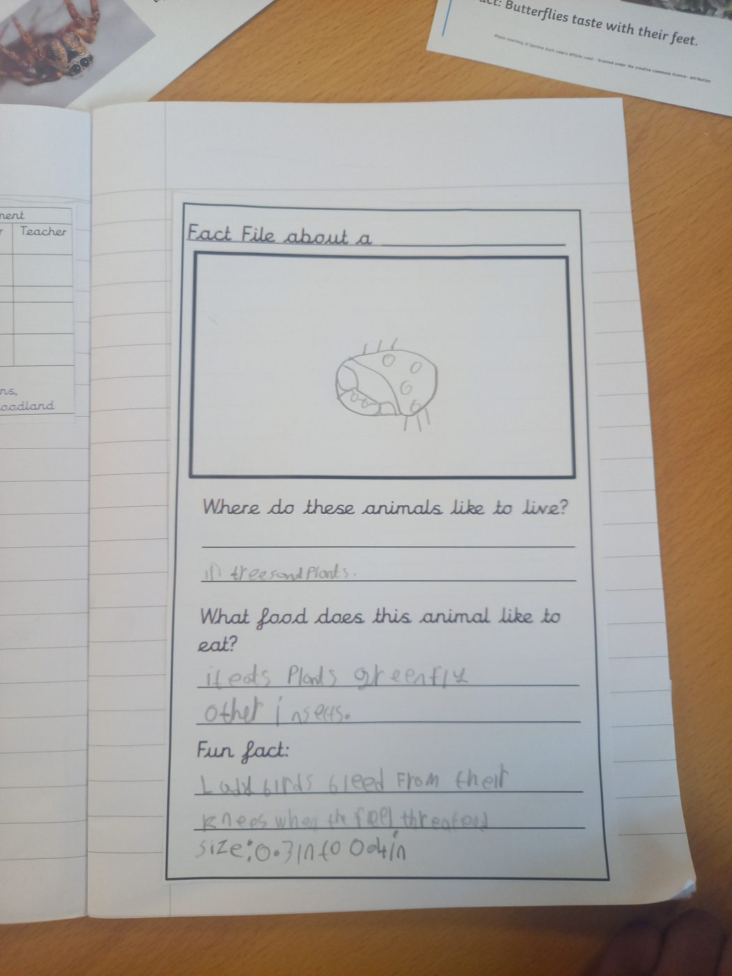 Also this week, we have been looking at different animals and their habitats. We also discussed micro habitats. The children did research on different mini beasts and wrote down their findings.
