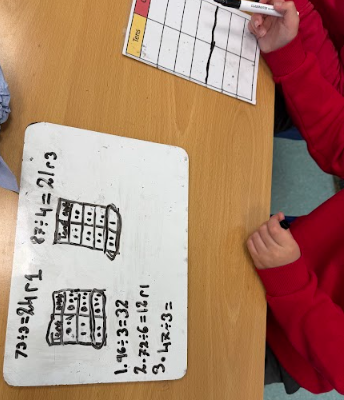 This week in Year 4, we were learning how to divide a 2-digit number by a 1-digit number in maths, focusing on what to do when there is a remainder. We recapped how to divide larger numbers using a place value chart and discussed what each part of a division sentence means.