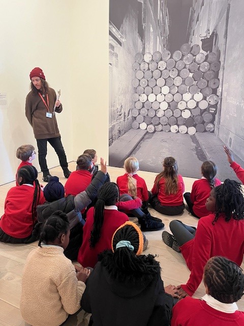 This week, Year 4 went on a very exciting visit to the Saatchi Gallery. Whilst they were there they explored the exhibition: Christo and Jeanne – Claude: Boundless. The workshop explored the way art makes us feel and how it can be interpreted in lots of different ways. It then looked at the life work of the couple and what they managed to achieve over their careers. Year 4 then got the opportunity to create their own artwork inspired by Christo, using a range of mixed media to create and artist representation of his work.