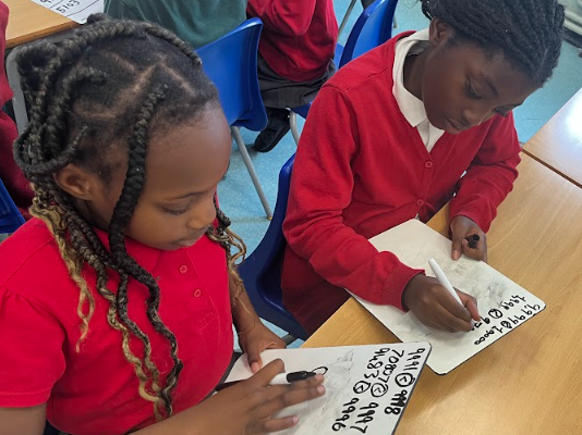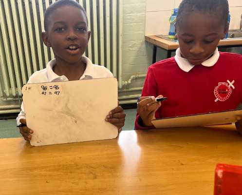 To practise, we played a fun comparing game with our partners. We made numbers using counters on our place value charts and then revealed them to each other. One partner wrote a sentence such as “___ is bigger than ”, while the other wrote “ is smaller than ___”. This helped us grow in confidence with using the correct language.