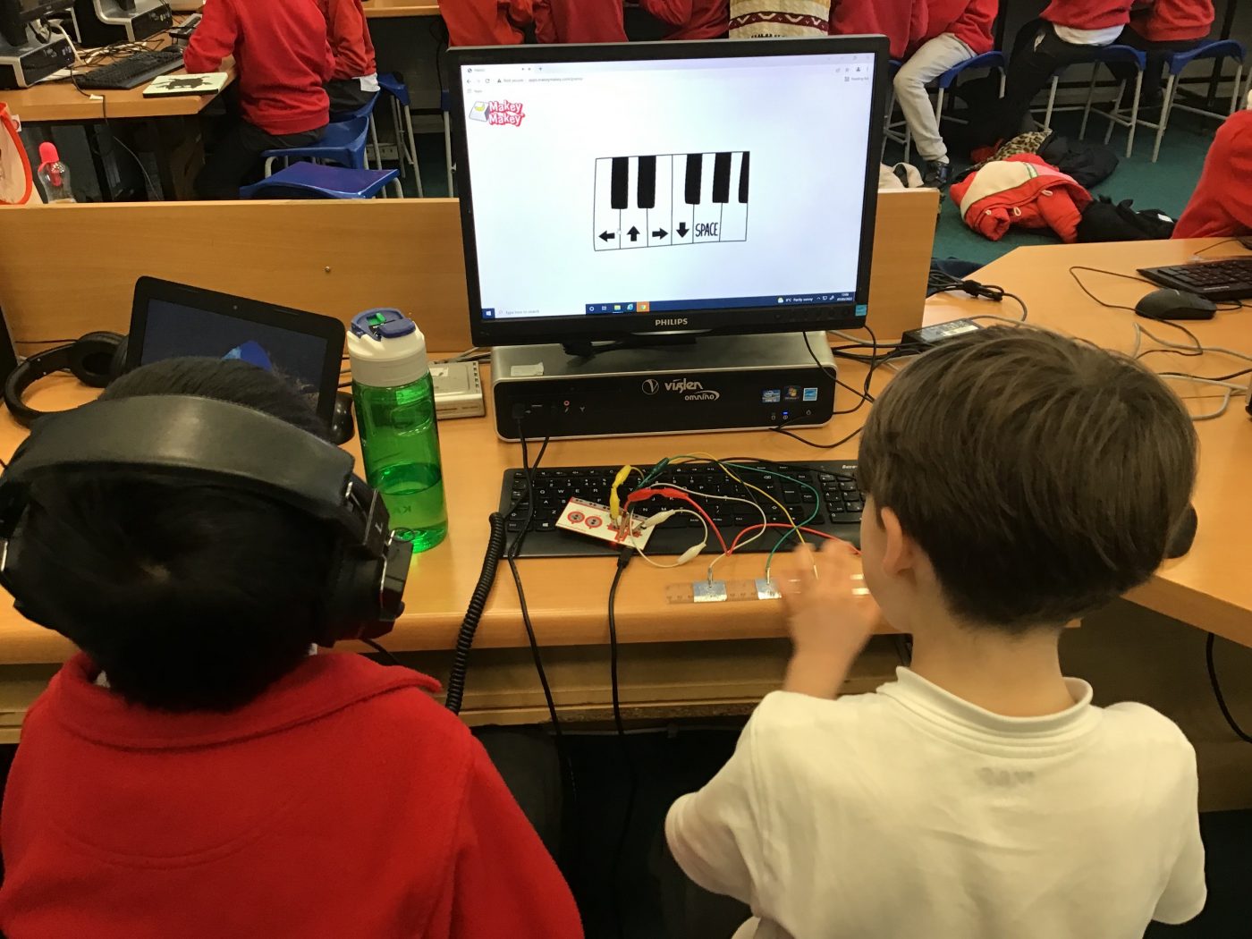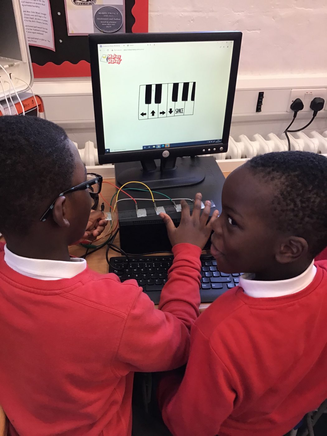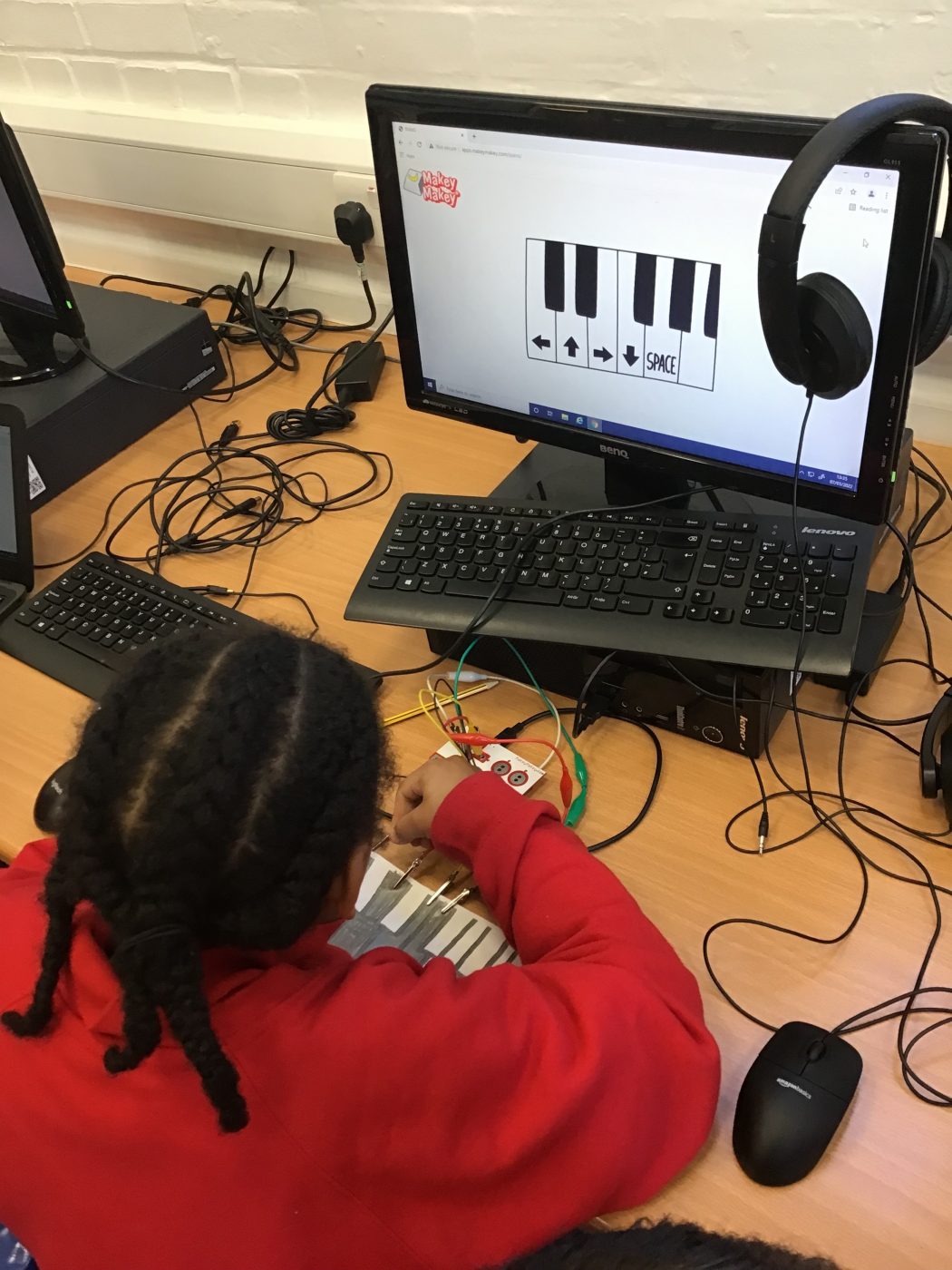 On Monday, the children were lucky enough to take part in a Conductive Music workshop, where they learnt about how to combine aspects of science, engineering and technology to create some wonderful music masterpieces! The children used their knowledge of electricity to create a simple circuit that was connected to a computer and a makey, makey machine. This clever invention allowed them to use aluminium foil wrapped around a ruler to play a range of tunes on a virtual keyboard. By the end of the session, the children was experts at playing Baby Shark, which they all loved!
