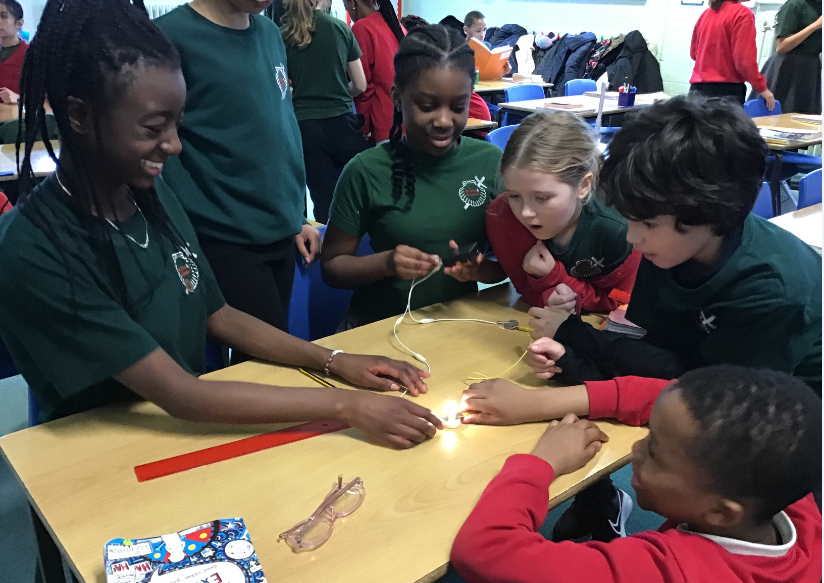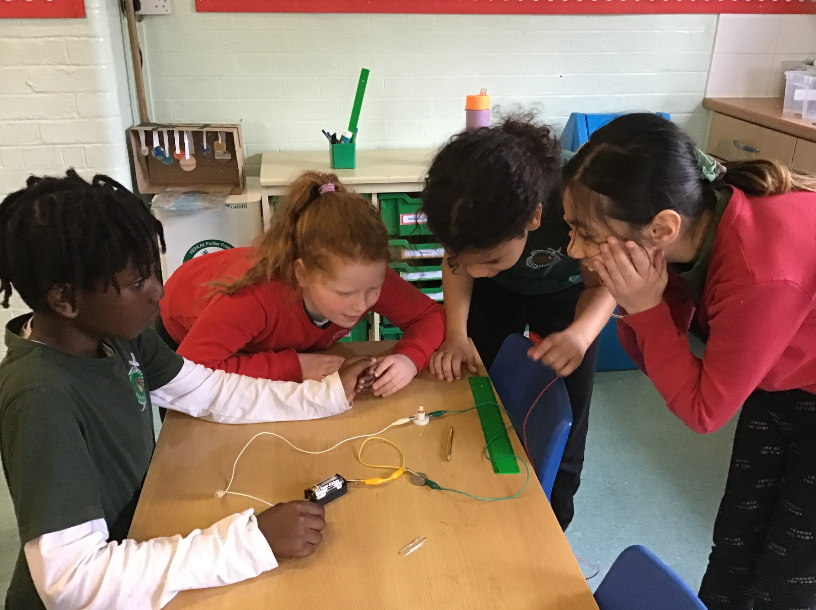 In science, we set up electrical circuits and used them to test whether the bulb would light when a variety of household objects were placed inside the circuit. From our results, we were able to conclude that objects made of metal are electrical conductors (they did allow electricity to pass through and the bulb lit) whereas materials such as wood and plastic are electrical insulators (they did not allow electricity to pass through and the bulb did not light).