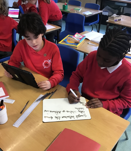 In history, Year 5 used the internet to research the Ancient Greeks and discover why we have seen soldiers and weapons in the primary sources we have been studying. We had a class discussion about which internet sites would contain accurate information and used these to find information about why the city-states went to war. We learned lots of interesting facts about the Peloponnesian War, the Trojan War and their war against the Persians.