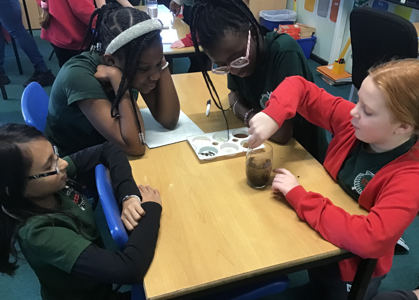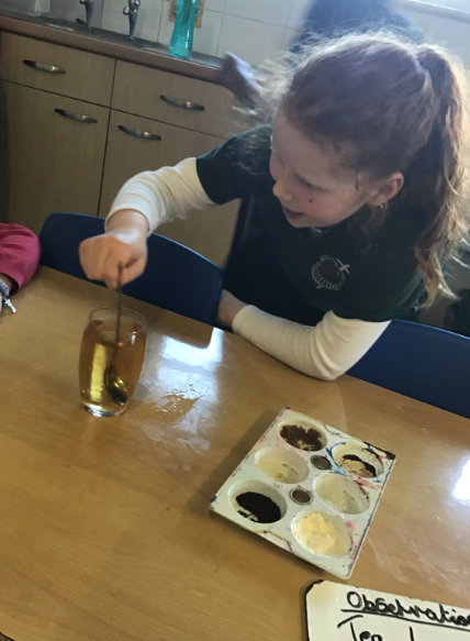 In science, we tested the solubility of a range of kitchen items: sugar, flour, oil, instant coffee and tea leave. We discovered that sugar is soluble (which makes our cereal milk sweet), tea leaves are insoluble (which is why they are in a bag and are removed) and that brown sugar is soluble (so we now know the colour of the substance doesn’t affects whether it can dissolve).