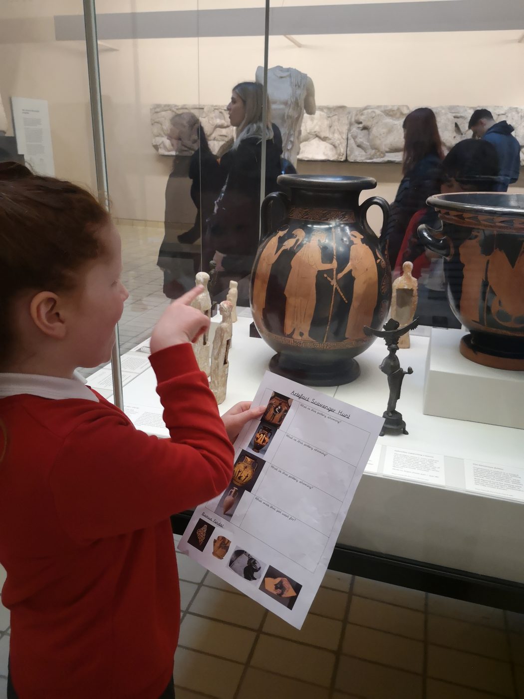 We began our day in the Ancient Greek exhibit, as it has been our history topic this term. We got to see an incredible collection of artefacts that have been discovered by archaeologists, including pottery, jewellery and friezes depicting famous battles. We even recognised some of the vases as the primary sources we have been studying in class!