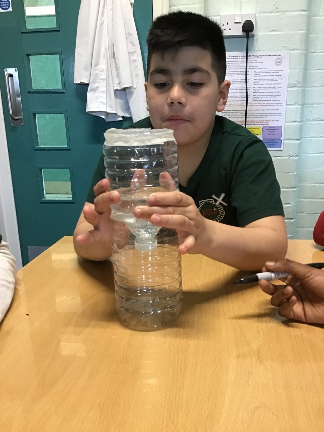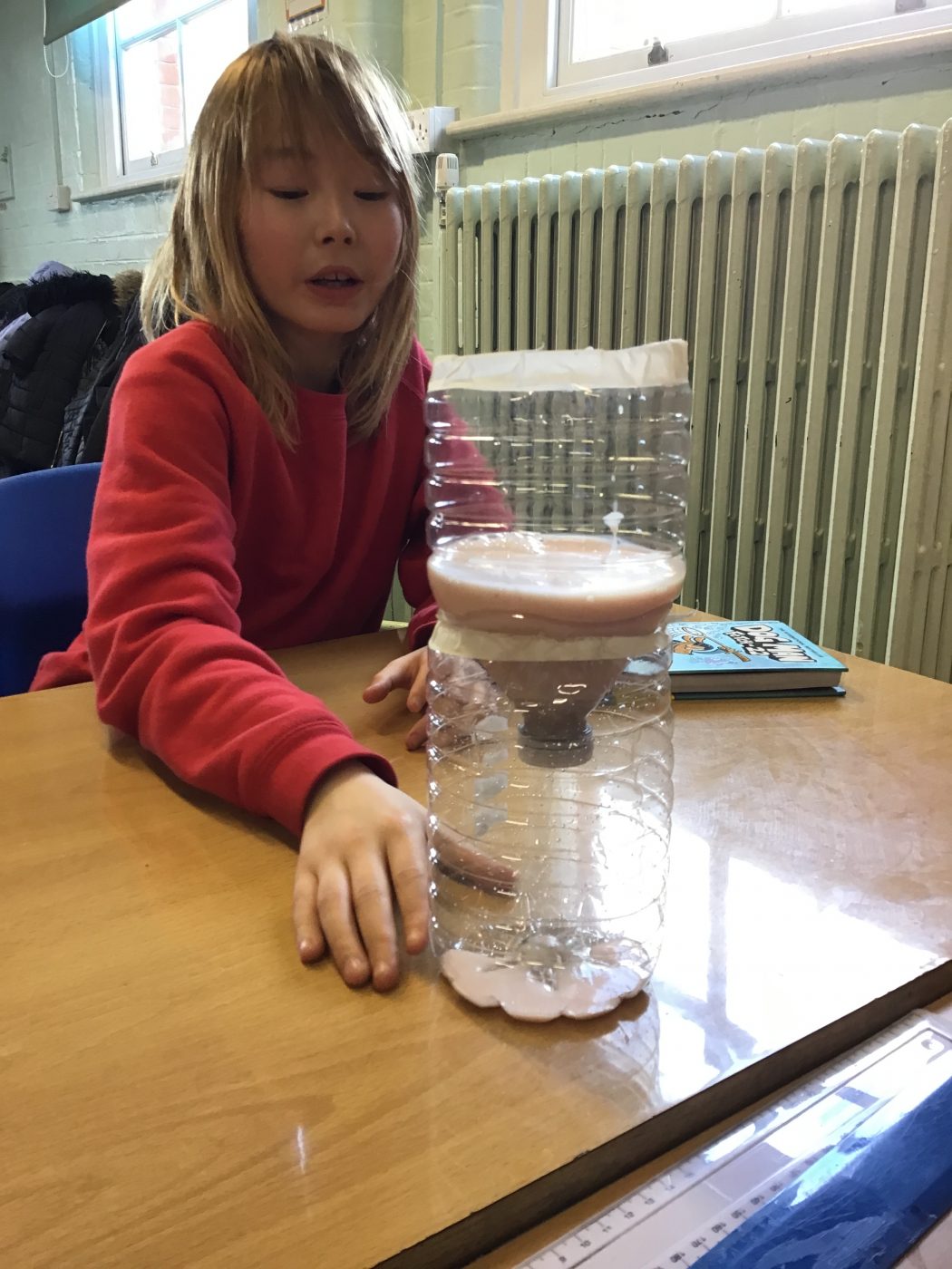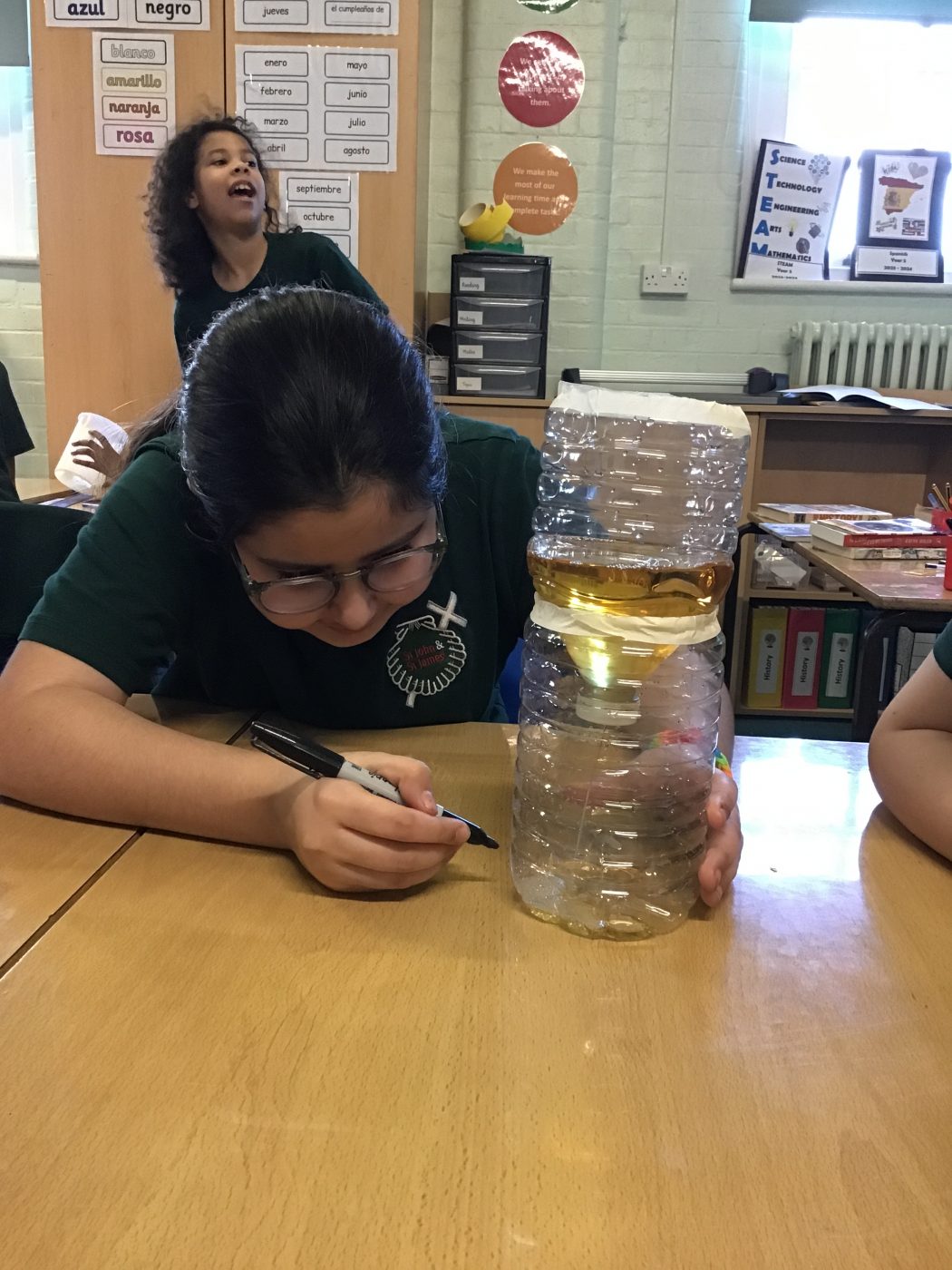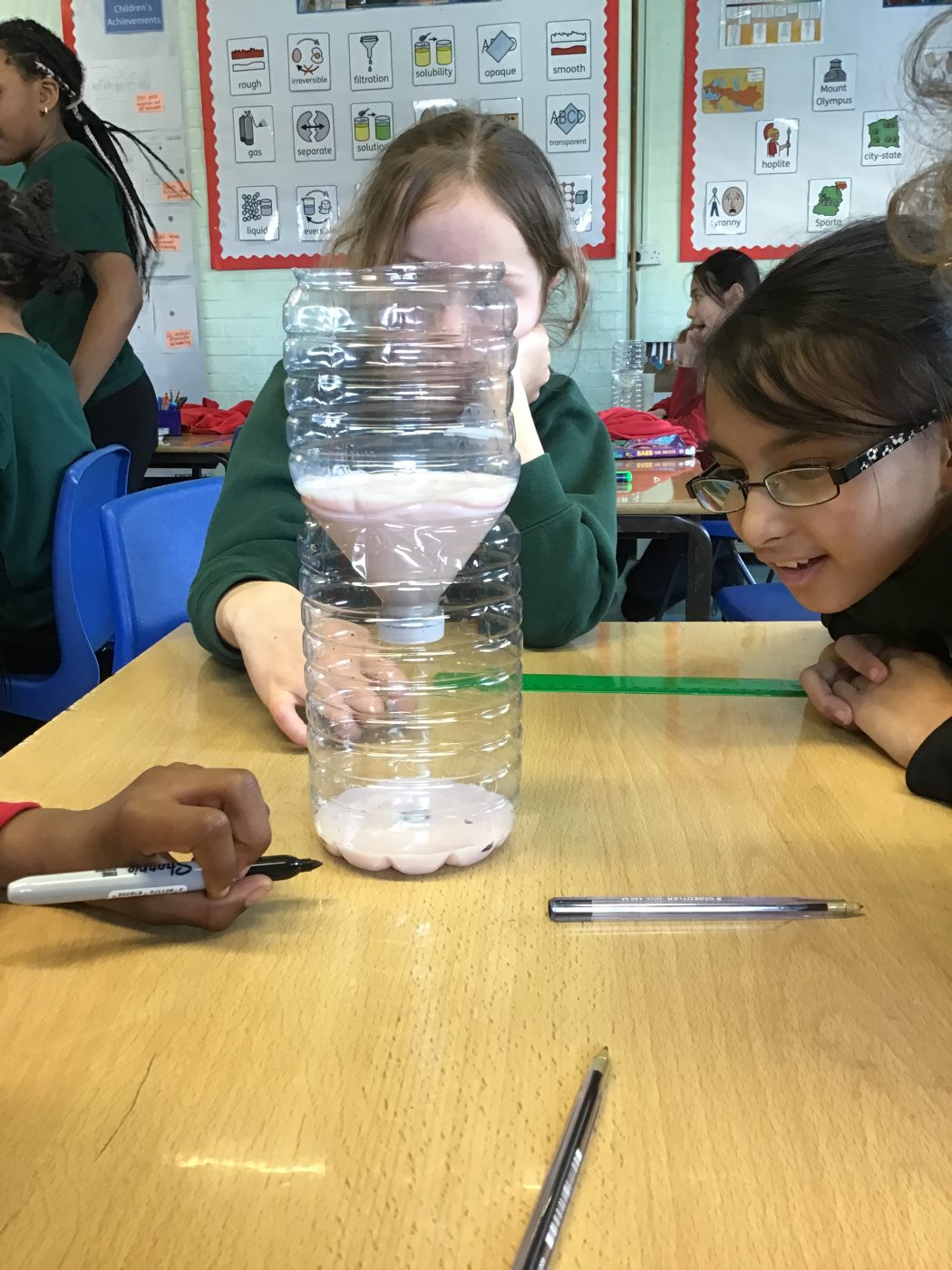 We made timers out of plastic bottles and tested whether the same volume of four different liquids (water, apple juice, lemonade and strawberry milk) would flow through it in the same amount of time. We discovered that the strawberry milk took a significantly longer time to pass through the small hole in our timer. We concluded that this was due to the higher viscosity of the strawberry milk – this means it was thicker than the others and so it has a greater resistance to flow.
