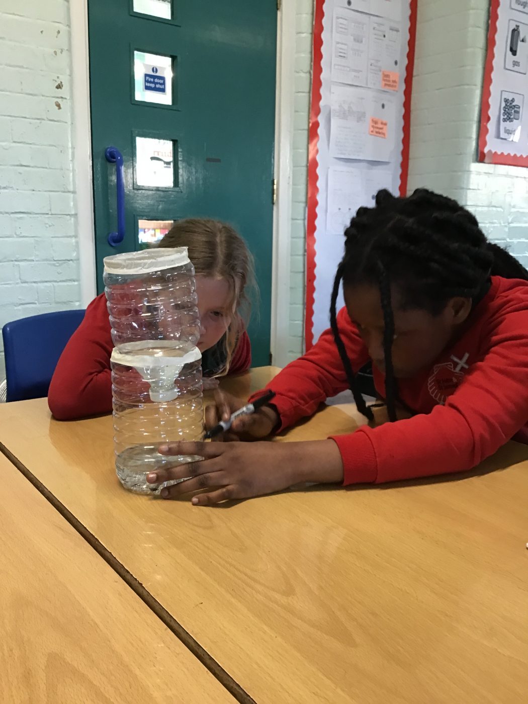 This week was Science Week! The theme this year is ‘changes over time’, so in keeping with our ‘properties of materials’ topic, we investigated whether all liquids flow at the same rate. We carried out all stages of an enquiry: prediction, planning, carrying out an experiment, analysing results and conclusion.
