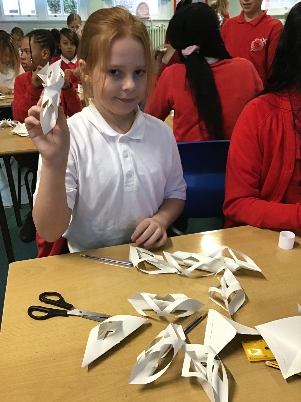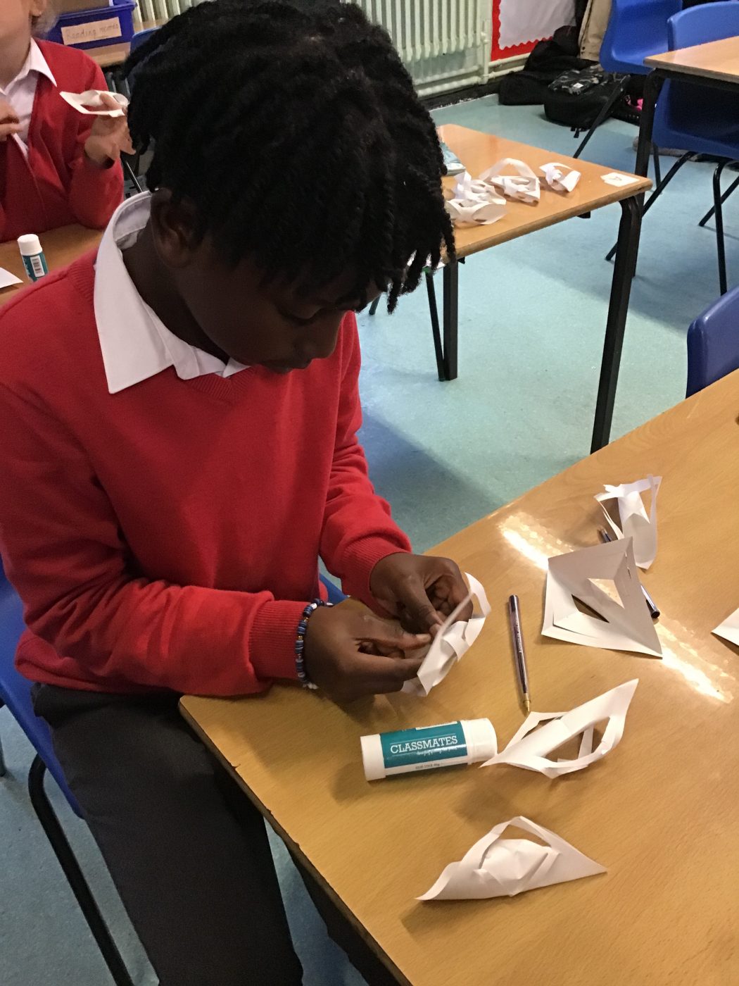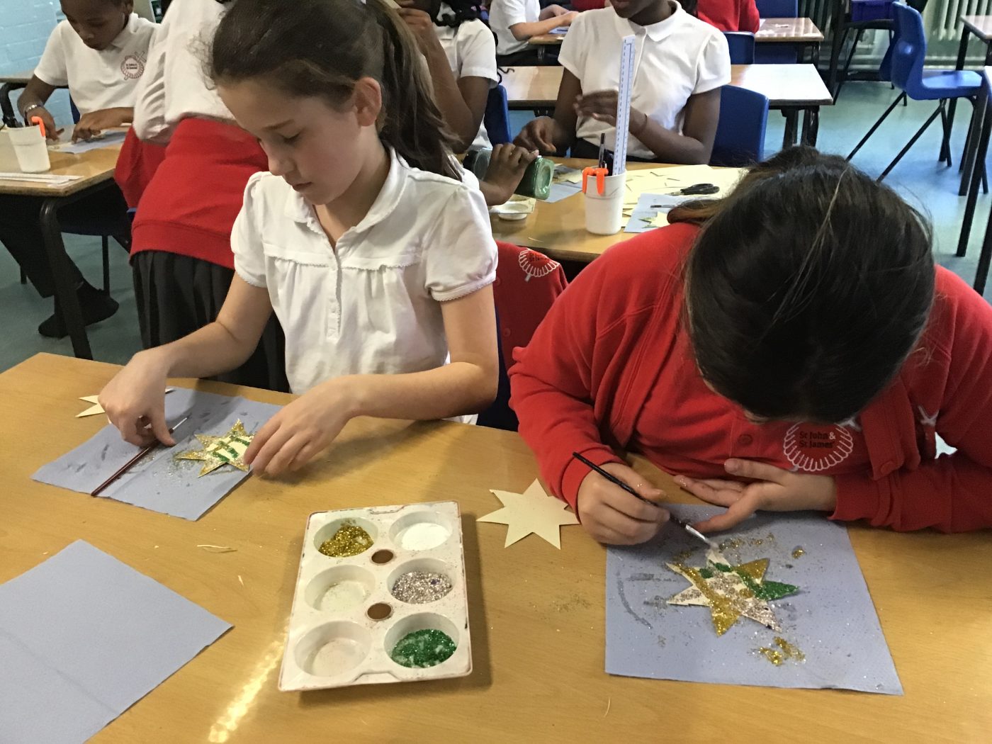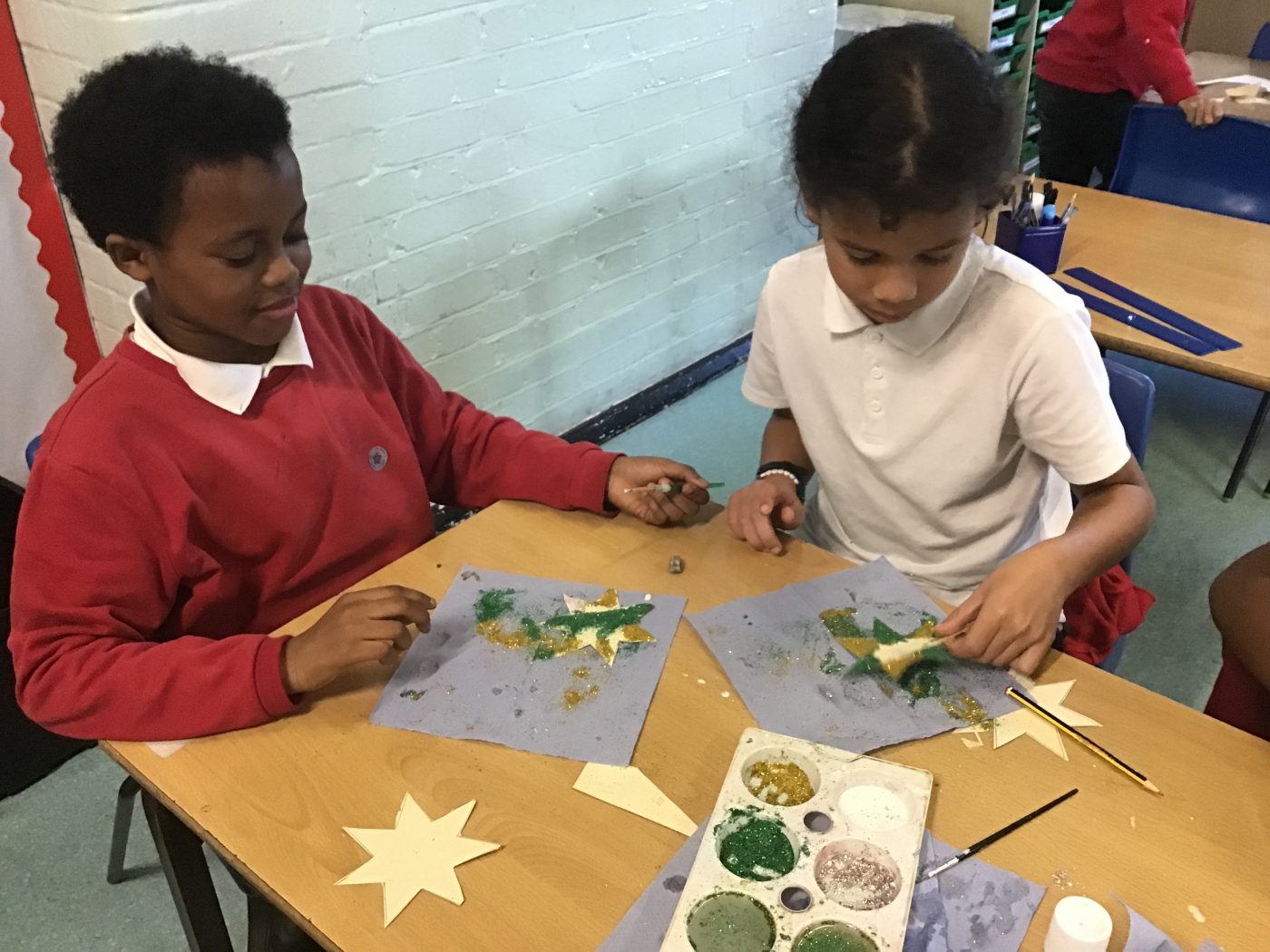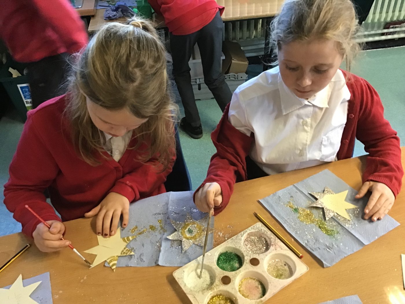 We have been creating our Christmas chandelier, using paper and glitter to represent the star that was followed by the wise men to Bethlehem.