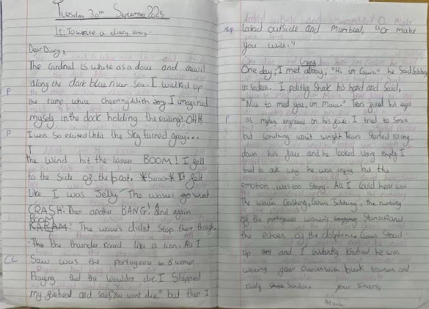 This week in Year 5, the children have been immersing themselves in our class text Journey to the River Sea. They have been working hard to write diary entries from the perspective of Maia, capturing her exciting voyage from London to the Amazon Rainforest. Using the first-person perspective, pupils explored Maia’s thoughts and emotions through the technique of ‘show me, don’t tell me’ descriptions, creating vivid and expressive writing. They also incorporated our grammar focus of the week—subordinate clauses—to add detail and depth to their sentences. We are incredibly proud of their creativity and growing confidence as writers.