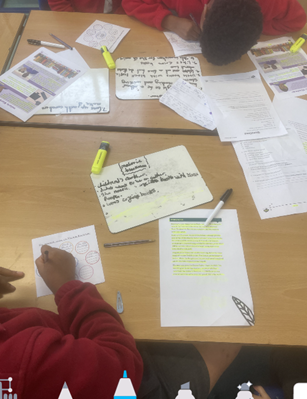 As part of this learning, the children worked together to create a presentation about Malorie Blackman. They researched key facts, shared ideas as a group, and decided how to present their information clearly. The children then made their presentation to display on the class board, using writing, pictures, and creative designs to show what they had learnt.