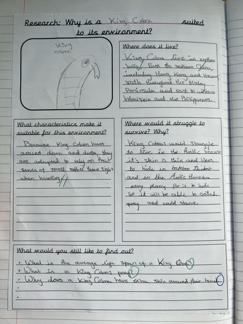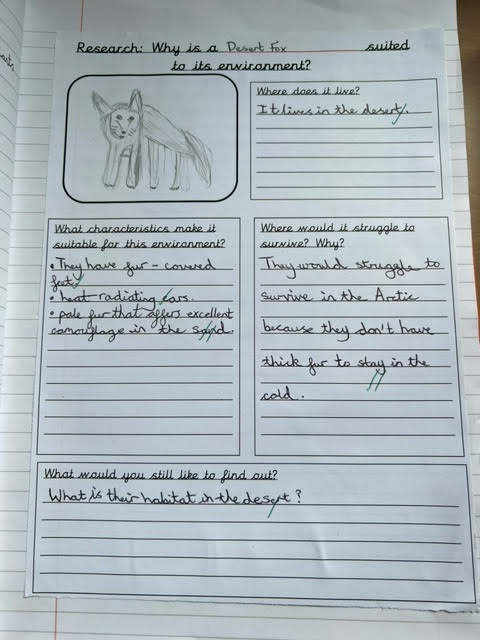 This half term in Science, Year 6 are continuing to explore inheritance and evolution. They have already learnt about fossils and inheritance of physical features, so this week we moved on to discover how animals have adapted to suit the habitats that they occupy. To begin with, the children worked together to create a definition for habitat and environment; it is important that they can tell the difference between the two to ensure that they can easily identify specific features that allow animals to thrive in their homes. The children then sorted the characteristics of some familiar animals and used these to explain how they have adapted, for example, fish have adapted to living underwater by using their gills to breathe instead of having lungs.