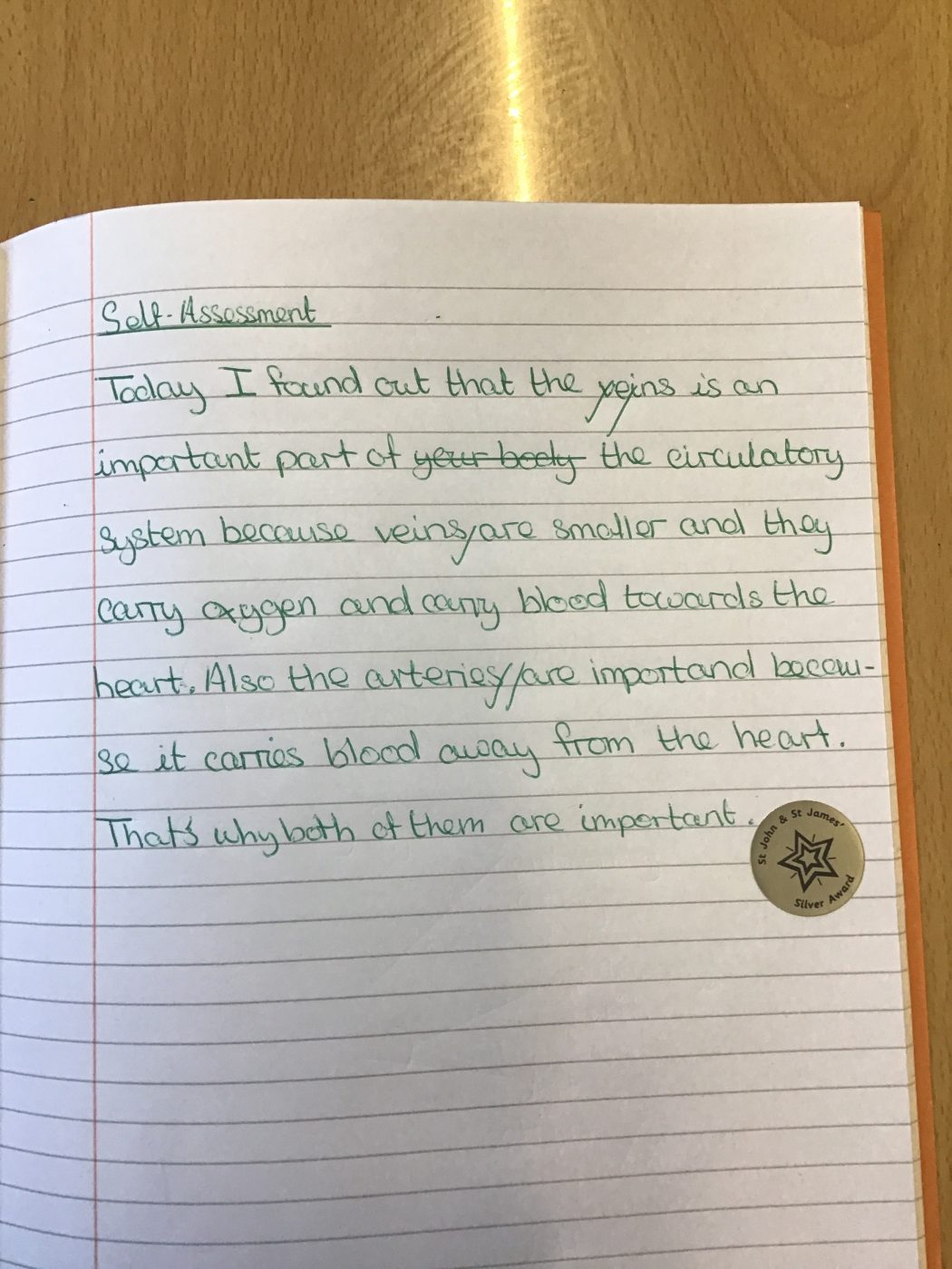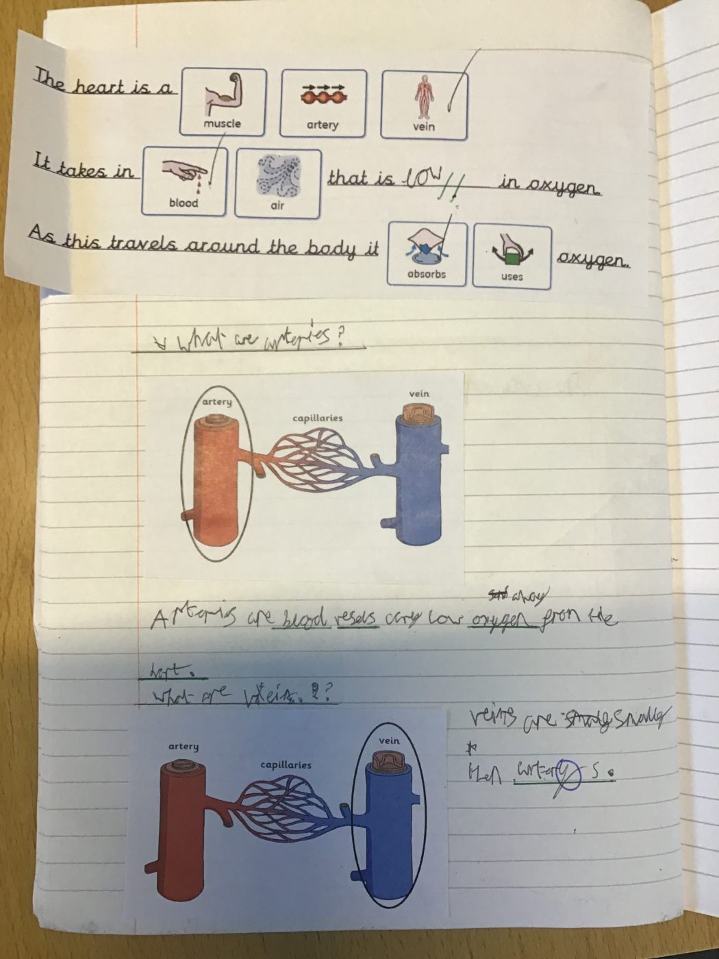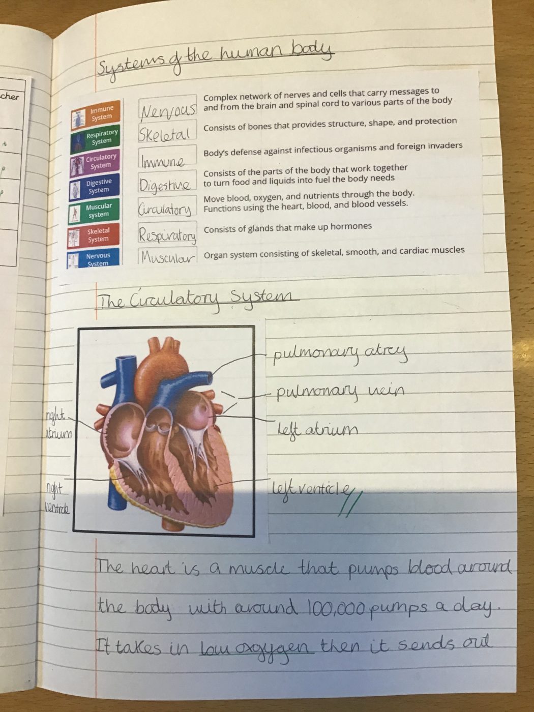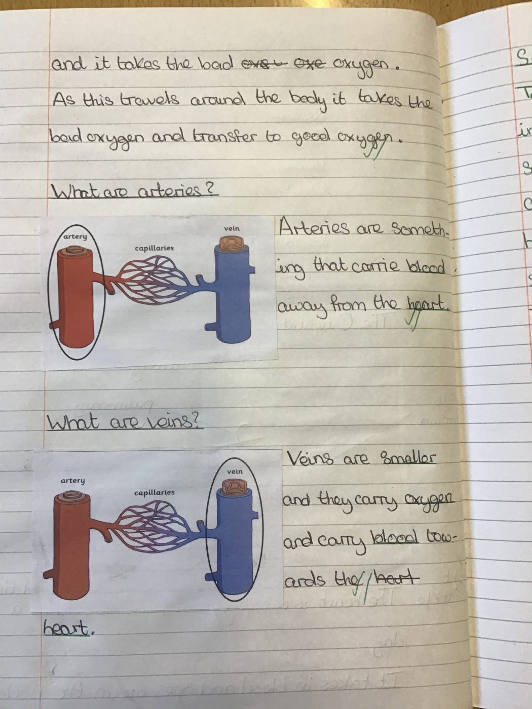 In science this week, the children began to explore the human circulatory system and learn about the function and importance of the heart. They used some prior knowledge of the human body to help them identify what the circulatory system is and the parts within it. Through research with secondary sources, the children discovered that the heart is a muscle that pulsates around 100,000 times a day! They were also fascinated with the idea that if all the veins and arteries in our bodies were removed and connected in a line, this would be able to travel around the world two and half times! The children also worked in pairs to find about the different functions of veins and arteries and were able to recognise these on scientific diagrams.