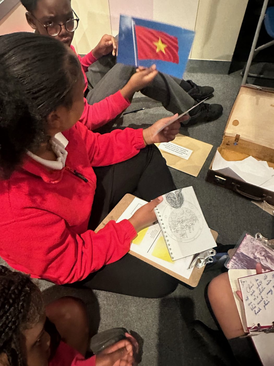 After exploring the artefacts in the cases and discovering the stories behind each individual, the children then had the opportunity to meet Linh. Linh and her family are a part of the exhibition and sought refuge in Hackney after war broke out in Vietnam. The children had the opportunity to ask lots of questions and find out about how Linh’s life had been affected by the move to Hackney.