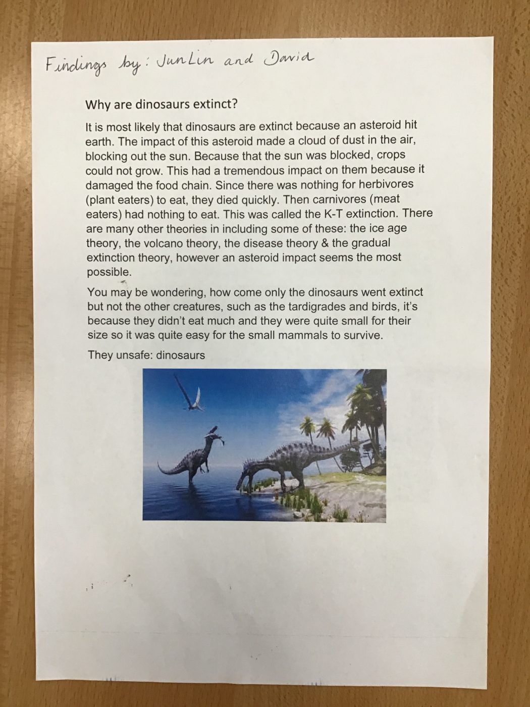 This week, to celebrate British Science Week, the children in Year 6 have been conducting an enquiry: Why are dinosaurs extinct?