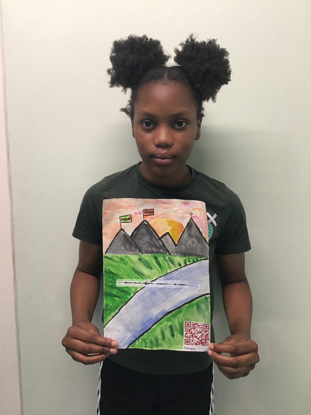 In their first piece of artwork, the children looked at the unique identity of their voices and the sound waves that are created by them. They recorded a short message about themselves and then used water colours to design a background around the sound waves created by their messages; each design is unique and intended to represent the children as an individual.